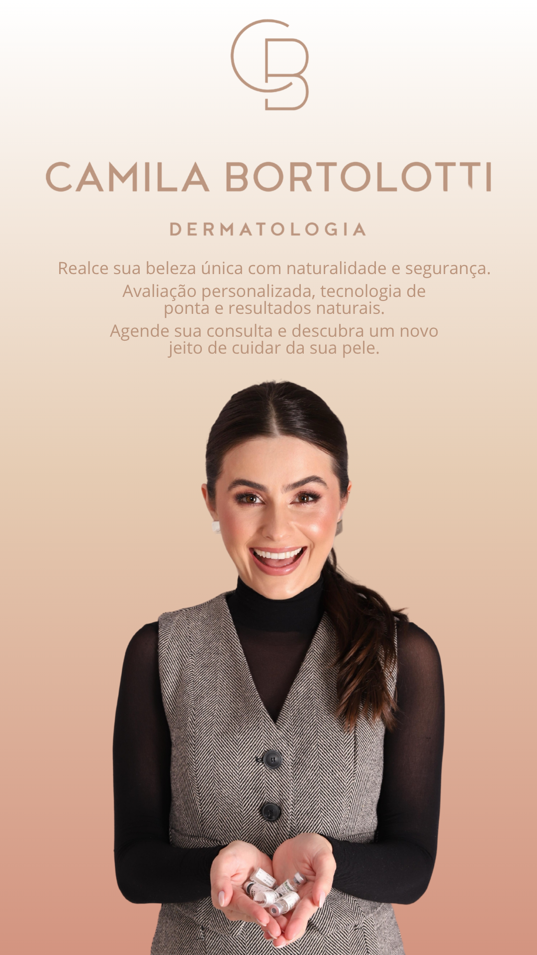 Sou Dra. Camila Bortolotti, apaixonada por cuidar da pele de forma completa, combinando ciência, tecnologia e sensibilidade.